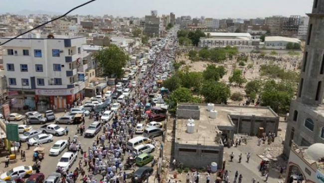 شيع الالاف من ابناء عدن جثمان إمام مسجد الرحمن بالمنصورة الشيخ عبدالرحمن الزهري والذي اغتاله مسلحون مجهولون فجر اليوم السبت.