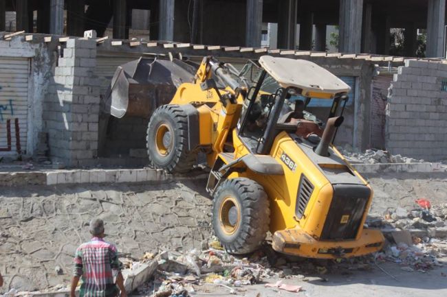 دشنت السلطة المحلية والأمنية في العاصمة المؤقتة عدن، اليوم، في مديرية صيرة الحملة الوطنية لإزالة العشوائيات بناءاً على اوامر النيابة ومسؤولي العوائق بالمحافظة بمشاركة قوات من الأمن والجيش والشرطة النسائية ومكتب الأشغال العامة وصندوق النظافة ،بحضور مدير عام مكتب رئيس هيئة أراضي وعقارات الدولة، سامح جمال .